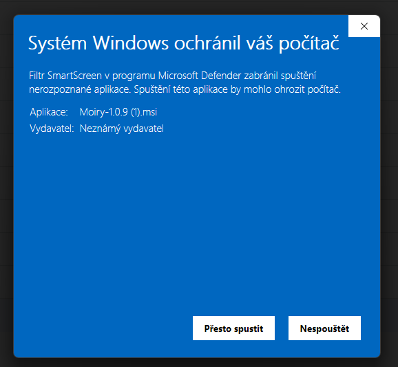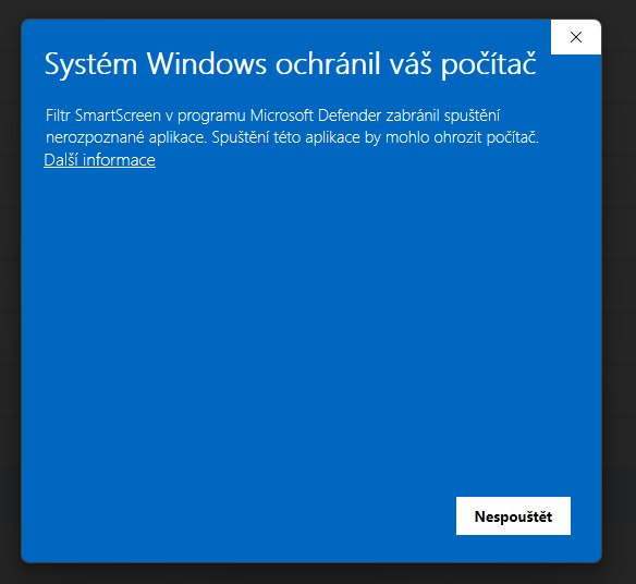 V dialogu Windows je třeba kliknout na text “Další informace” a následně “Přesto spustit”.